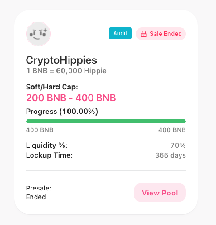 - Crypto Hippies launched their tokens on PinkSale at 03:59:20 PM +UTC