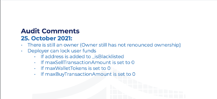 It’s worth noting that Solid Proof audit did comment on that owners can lock users fund.