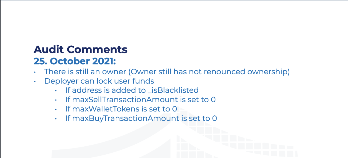 It’s worth noting that Solid Proof audit did comment on that owners can lock users fund.
