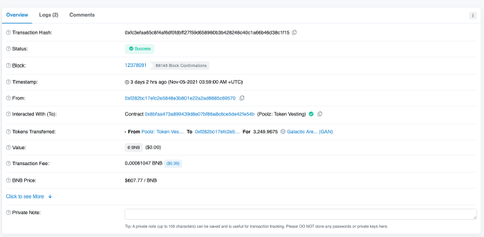 As mentioned previously, the initial price is set by the FIRST liquidity added. As a result, one GAN token was valued around $1.13 per token. In comparison to the presale rate ($0.005 per token) according to the Poolz website, the listing rate was 226x higher than the presale tokens